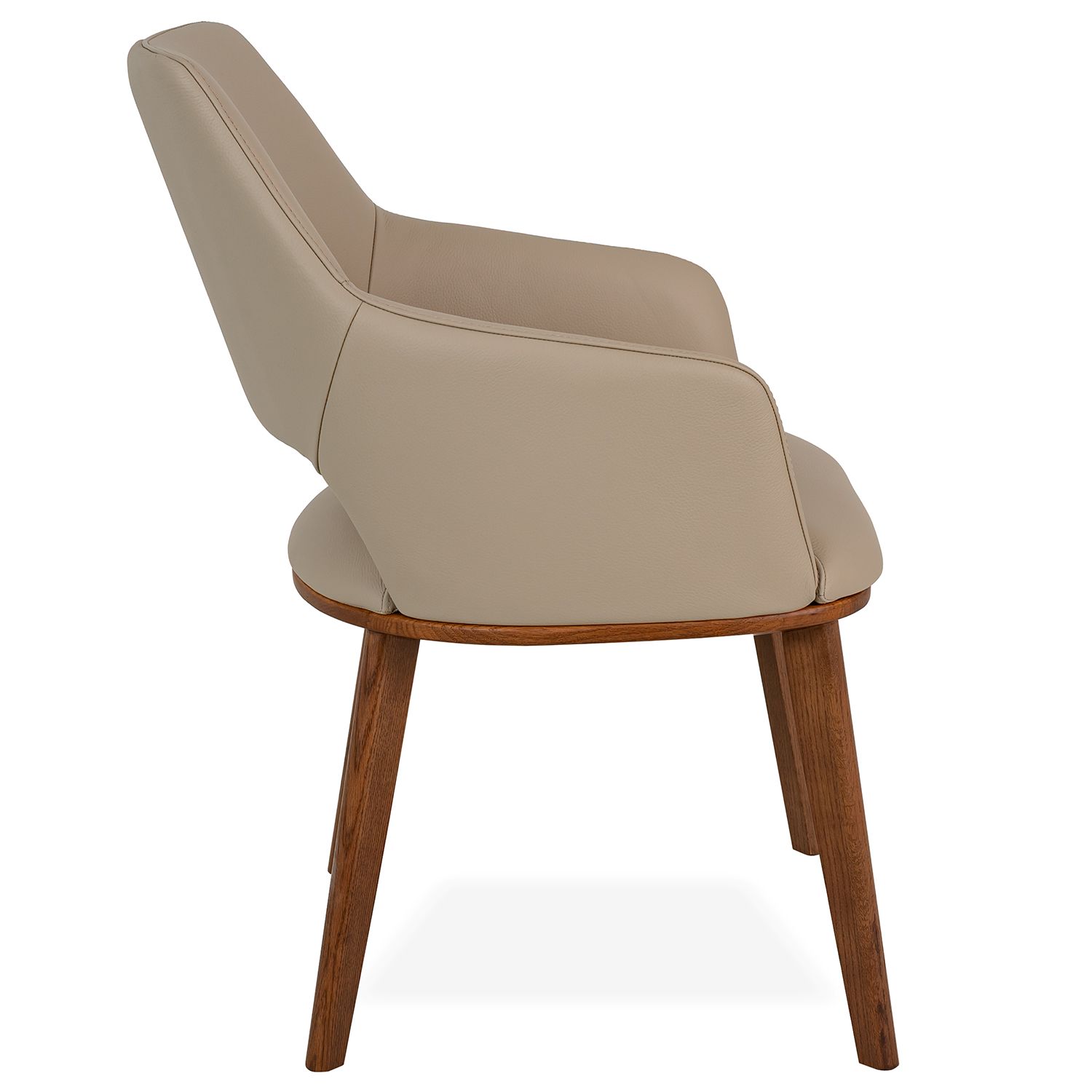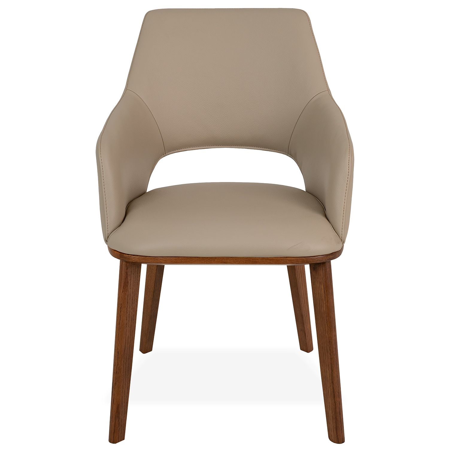 [0] => myla dining chair w/arm - light mocca 2301 leather / walnut legs