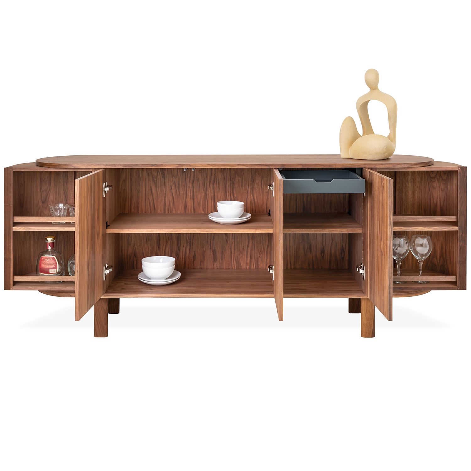 [description] => Curve Sideboard Walnut Oil, 4 Door/ 2 Drw, 77.5x18.1x31.5"