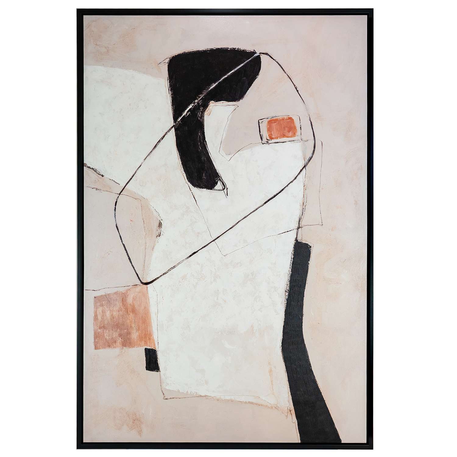 [0] => With its muted tones and layered shapes, the Object Permanence Wall Art brings understated elegance to your interior. Gentle hues of dusty pink and off-white form a backdrop for bolder shapes and lines in black and rust orange. A hand-painted gel texture adds a sense of depth, while the included black frame makes this artwork ready to hang.