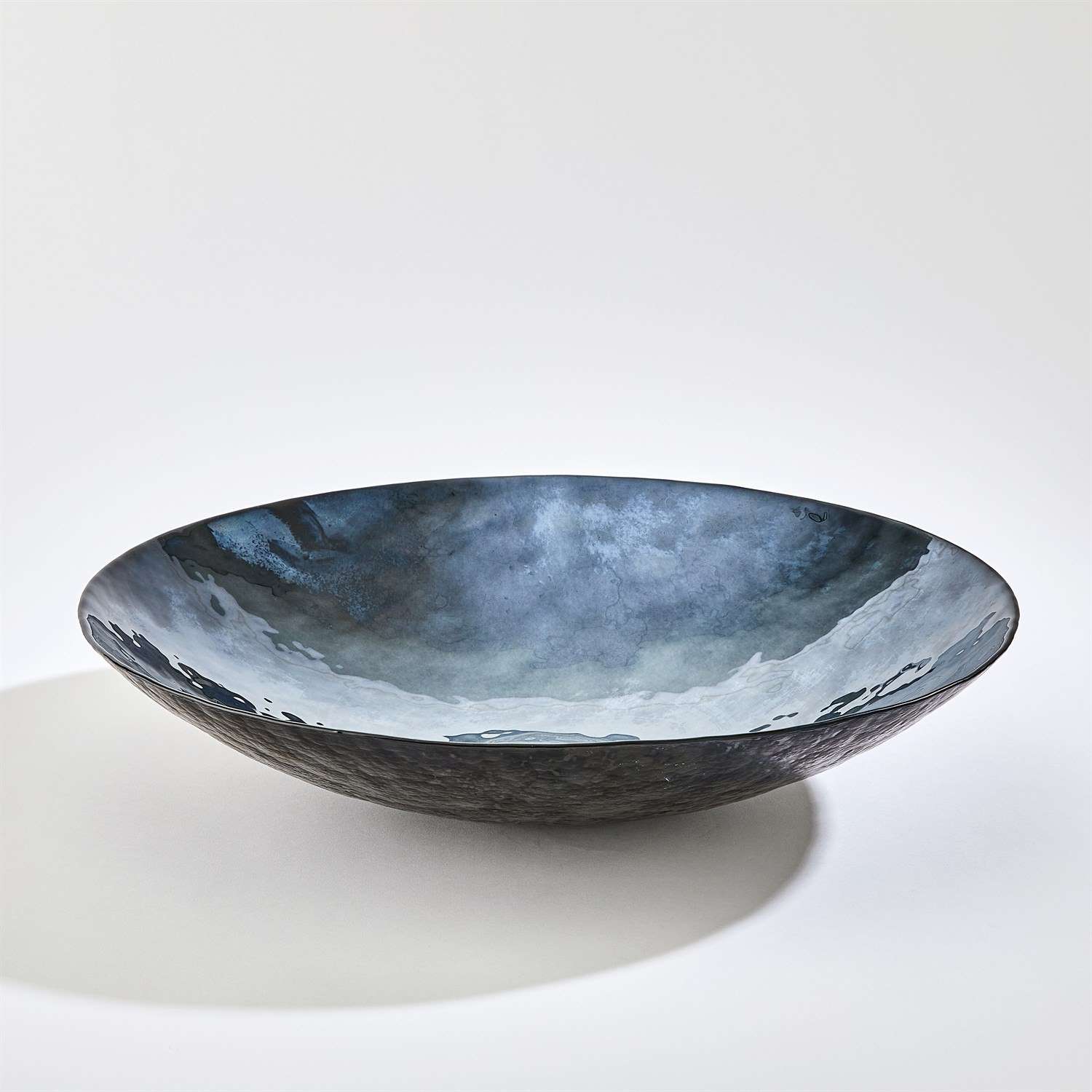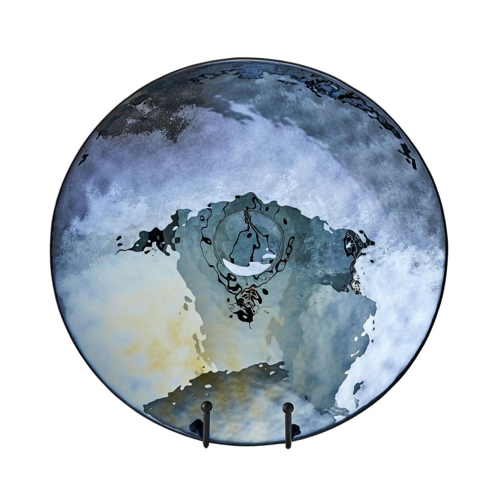 Handcrafted by Italian artisans on the island of Murano, the Obsidian Charger features a striking metallic black finish full of depth and reflective tones. Created from molten glass and cooled into a stable art glass piece, this plate has a distinctive wide structure and iridescent look that makes it a captivating work of art. Obsidian is food safe and watertight.