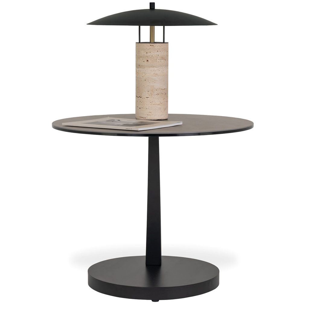 Bold and modern, the Orio End Table features a circular tabletop in matte grey ceramic, complemented by an angled leg and matching circular base in powder-coated black metal. Orio's simple, subtly architectural form makes it ideal for contemporary, industrial, or minimalist design themes. Pair with the matching Dorio Coffee Table for an extra layer of functionality.
