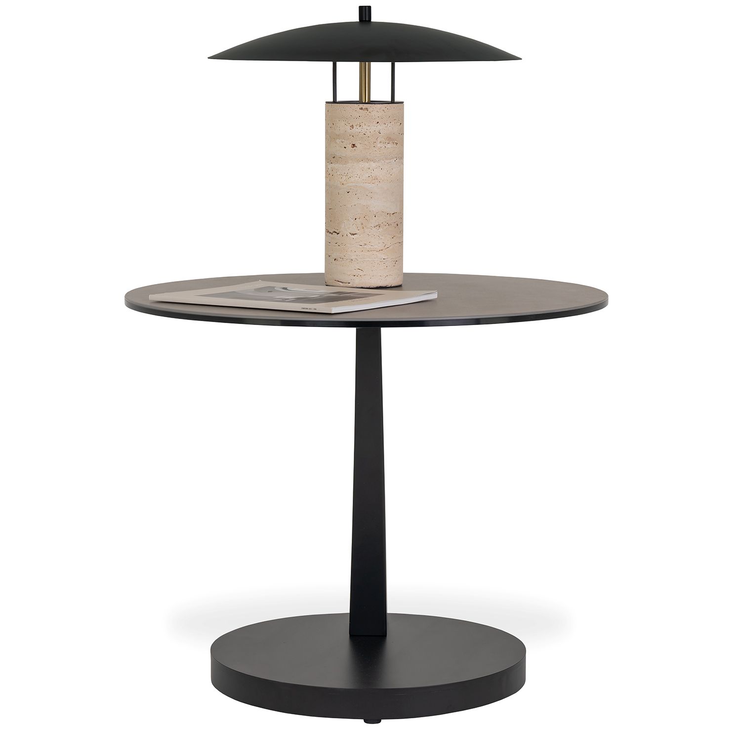 [0] => Bold and modern, the Orio End Table features a circular tabletop in matte grey ceramic, complemented by an angled leg and matching circular base in powder-coated black metal. Orio's simple, subtly architectural form makes it ideal for contemporary, industrial, or minimalist design themes. Pair with the matching Dorio Coffee Table for an extra layer of functionality.
