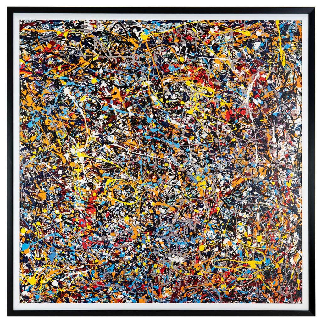 [0] => The Painted Euphoria Wall Art will infuse your space with energy and excitement. Reminiscent of the "drip" paintings of Jackson Pollock, this artwork features bold shades of red, orange, yellow, blue, black, and white splattered in multilayered lines that almost seem to burst from the canvas. A hand-painted gel texture adds an extra sense of depth, and the included black frame makes this work ready to display.