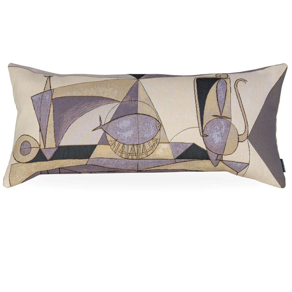 Featuring the art of Pablo Picasso, the Nature Morte a la Bouteille Pillow uses geometric lines and shades of purple, beige, and black to depict a still life with a bottle, a fish, and a jug. The pillow's jacquard-style front has a thick and durable feel and is woven from a cotton-poly blend with a discreet bottom zipper. Made in France, the Nature Morte a la Bouteille Pillow is a sophisticated accent for any modern art lover's interior.