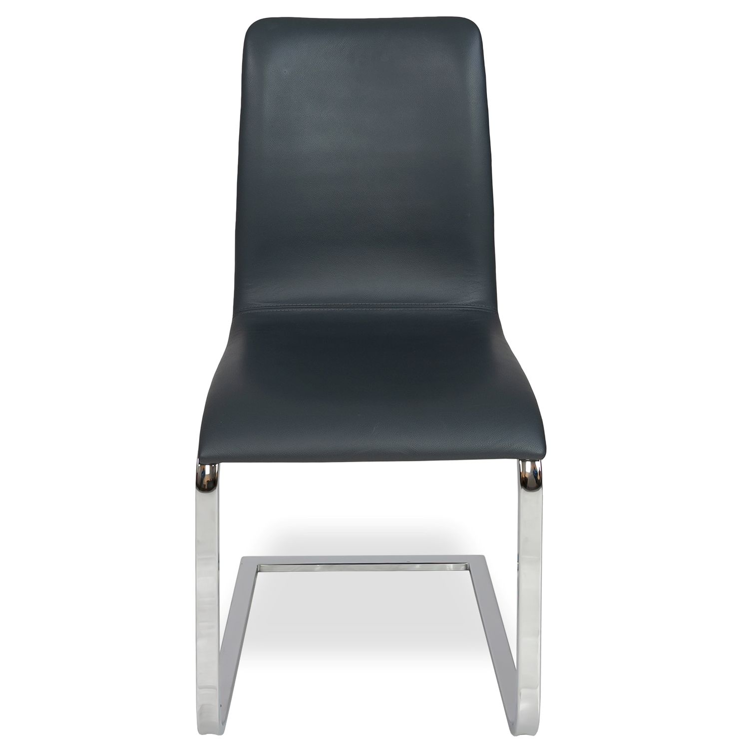 [0] => The Rio Dining Chair, available with anthracite charcoal leather upholstery and a chrome base, features flowing lines and a floating frame that are reminiscent of Verner Panton's lauded "Panton" chair. The sled base adds a minimalist touch, while the elegantly designed frame imbues the chair with a feeling of smooth continuity.