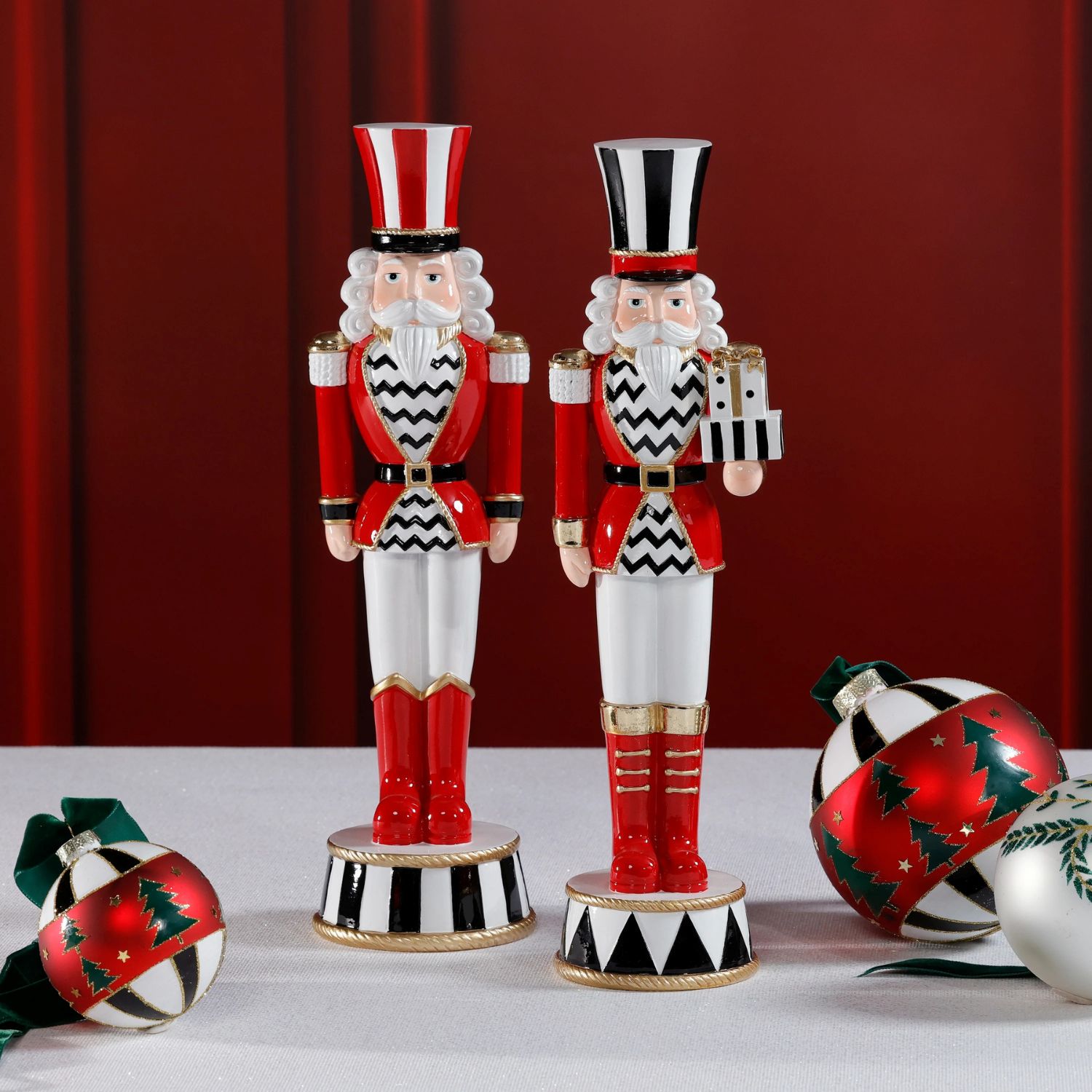 [0] => Protect your gifts this holiday with the Royal Guard duo. Each guard stands on a podium and wears a festive outfit in red, white, gold, and black. One guard stands at attention while his companion holds a small stack of presents. Mix and match this festive pair with the Twinkle Troop to maximize your holiday aesthetic.