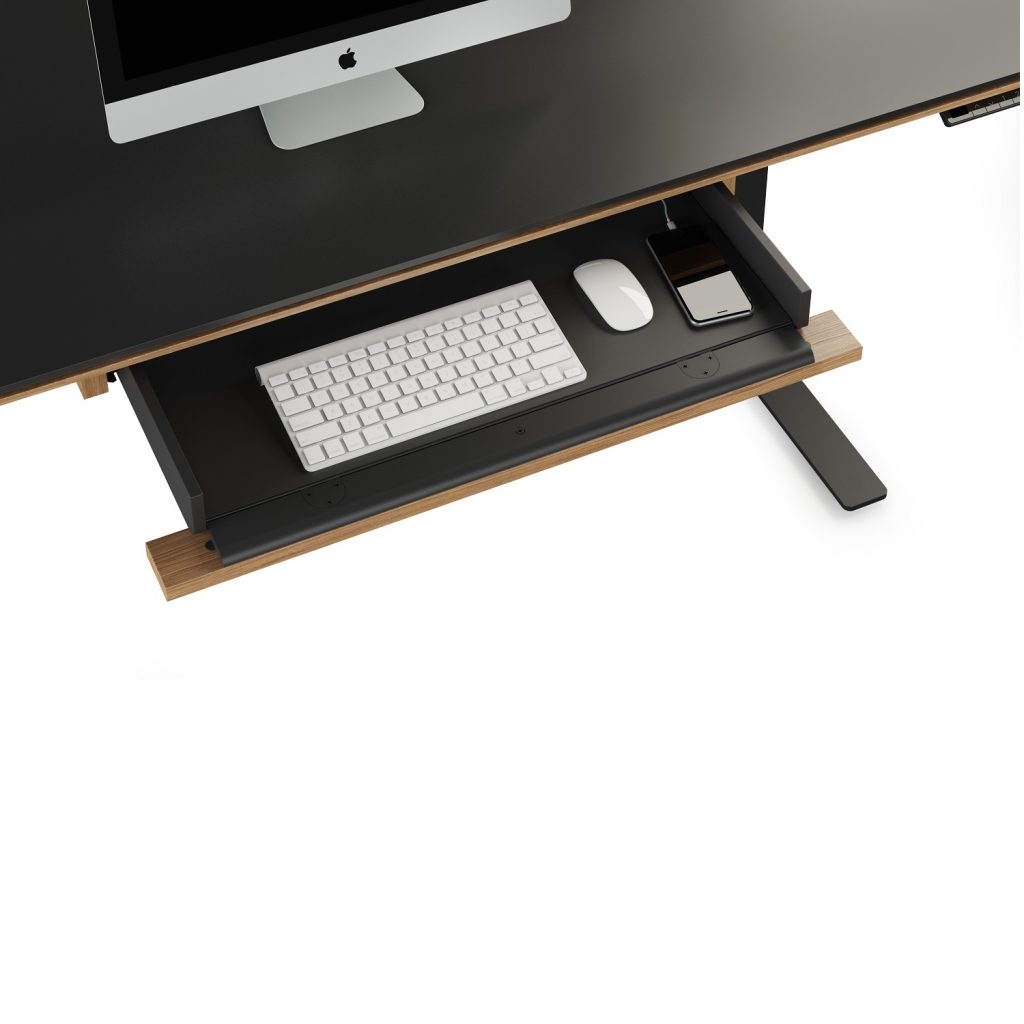 The Sequel 20 Keyboard Storage Drawer is compatible with the Sequel 20 Lift Desk and the Sequel 20 Large Lift Desk. The multifunction flip-down drawer provides the perfect home for a keyboard, mouse, and other rechargeable items, and tucks away neatly when not in use. The non-slip, mouse-friendly material also ensures the drawer's contents are kept securely in place.