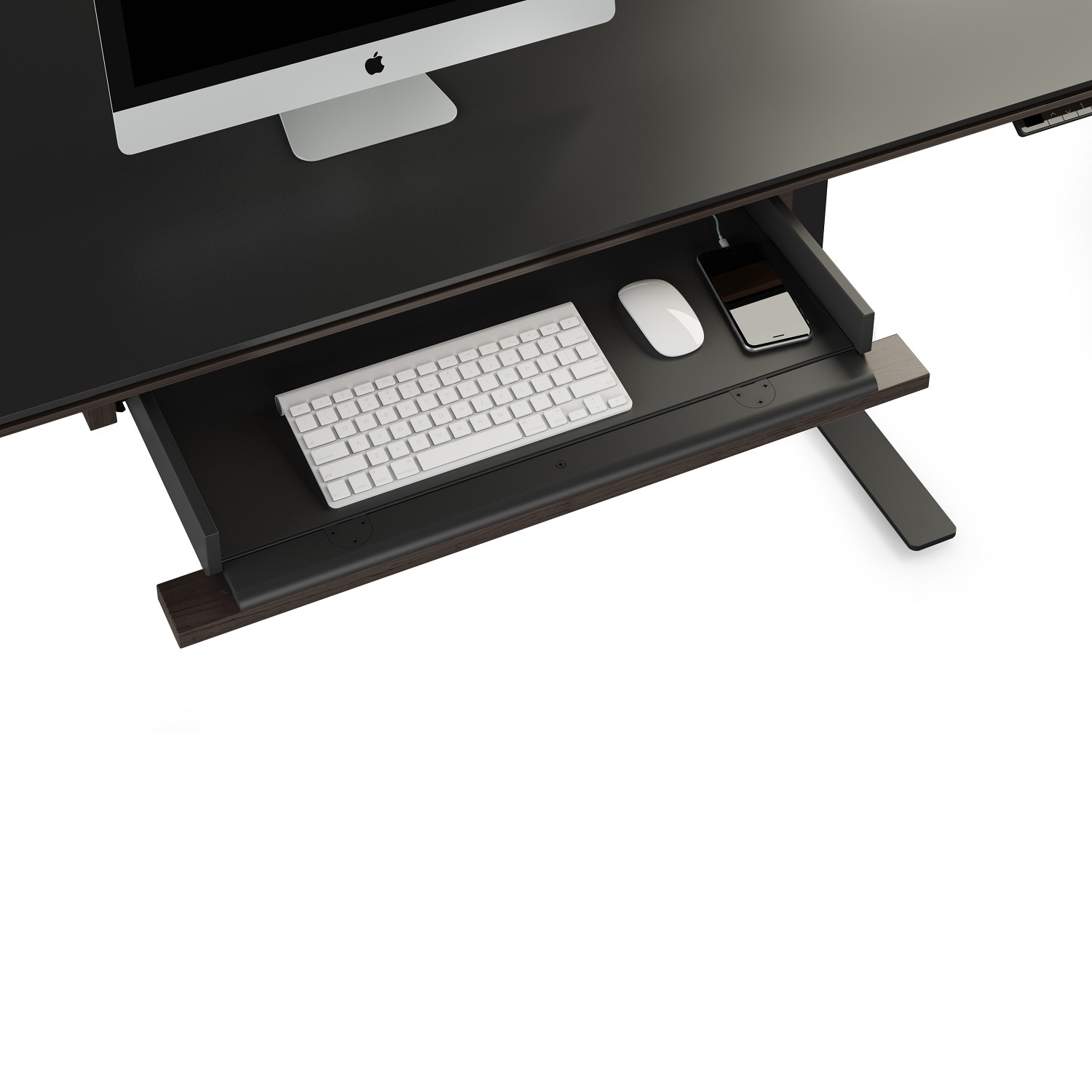 The Sequel 20 Keyboard Storage Drawer is compatible with the Sequel 20 Lift Desk and the Sequel 20 Large Lift Desk. The multifunction flip-down drawer provides the perfect home for a keyboard, mouse, and other rechargeable items, and tucks away neatly when not in use. The non-slip, mouse-friendly material also ensures the drawer's contents are kept securely in place.