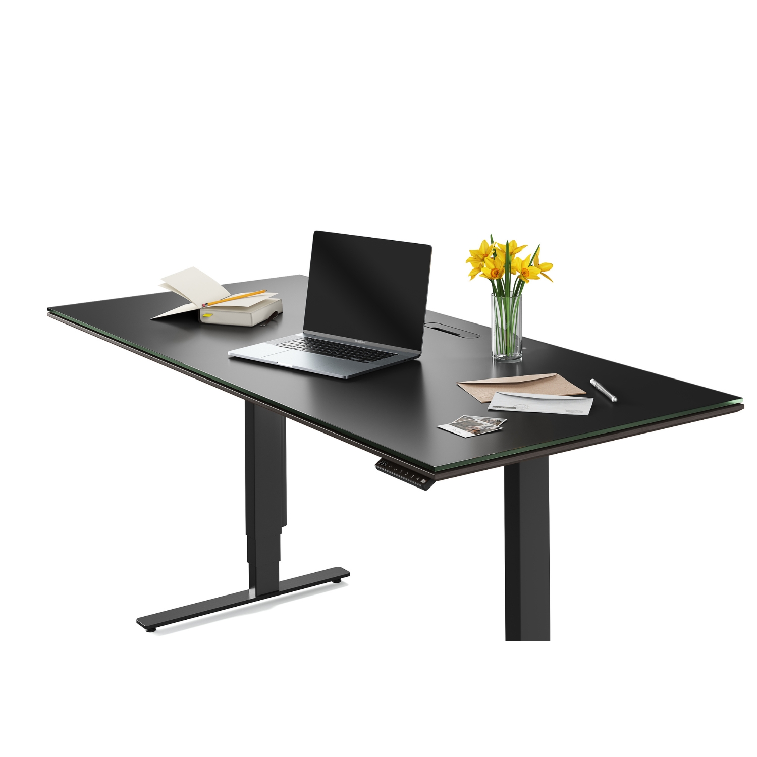 The Sequel 20 Large Lift Desk is a versatile, height-adjustable desk featuring a powered leg system controlled by a digital, programmable keypad. The desk's innovative design also includes a built-in wire management system and a durable black satin-etched tempered glass work surface that is resistant to dings, scratches, and fingerprints. Whether sitting, standing or somewhere in-between, the Sequel 20 Lift Desk will elevate any workday.