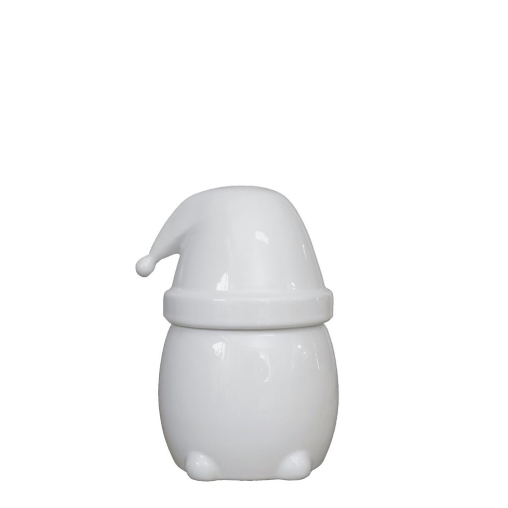 Bring adorable holiday charm to your home with the Small White Eating Santa decoration. Featuring a glossy ceramic body, tiny feet, and a removable Santa-style hat, this minimalist Santa is perfect for hiding away holiday treats.