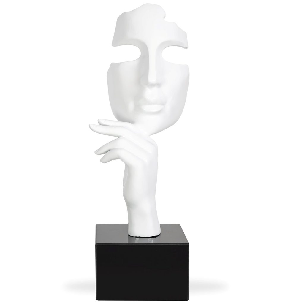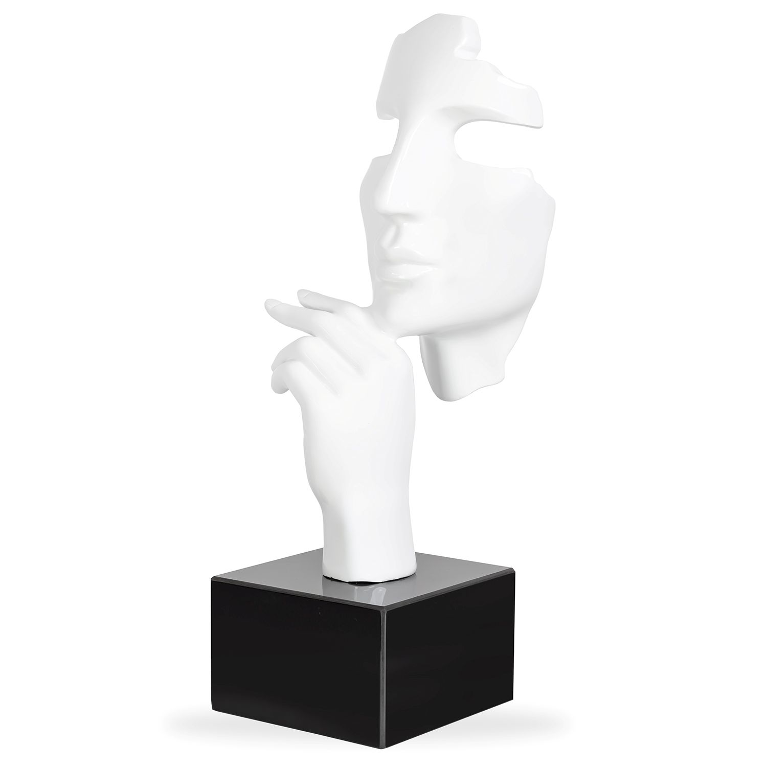 [0] => Sono Perplessa (Italian for "I am perplexed") depicts the cutout face of a figure with its chin resting on its hand in a contemplative gesture. Made of glossy white polyresin and standing on a black stone base, Sono Perplessa unites classic simplicity with modern flair.