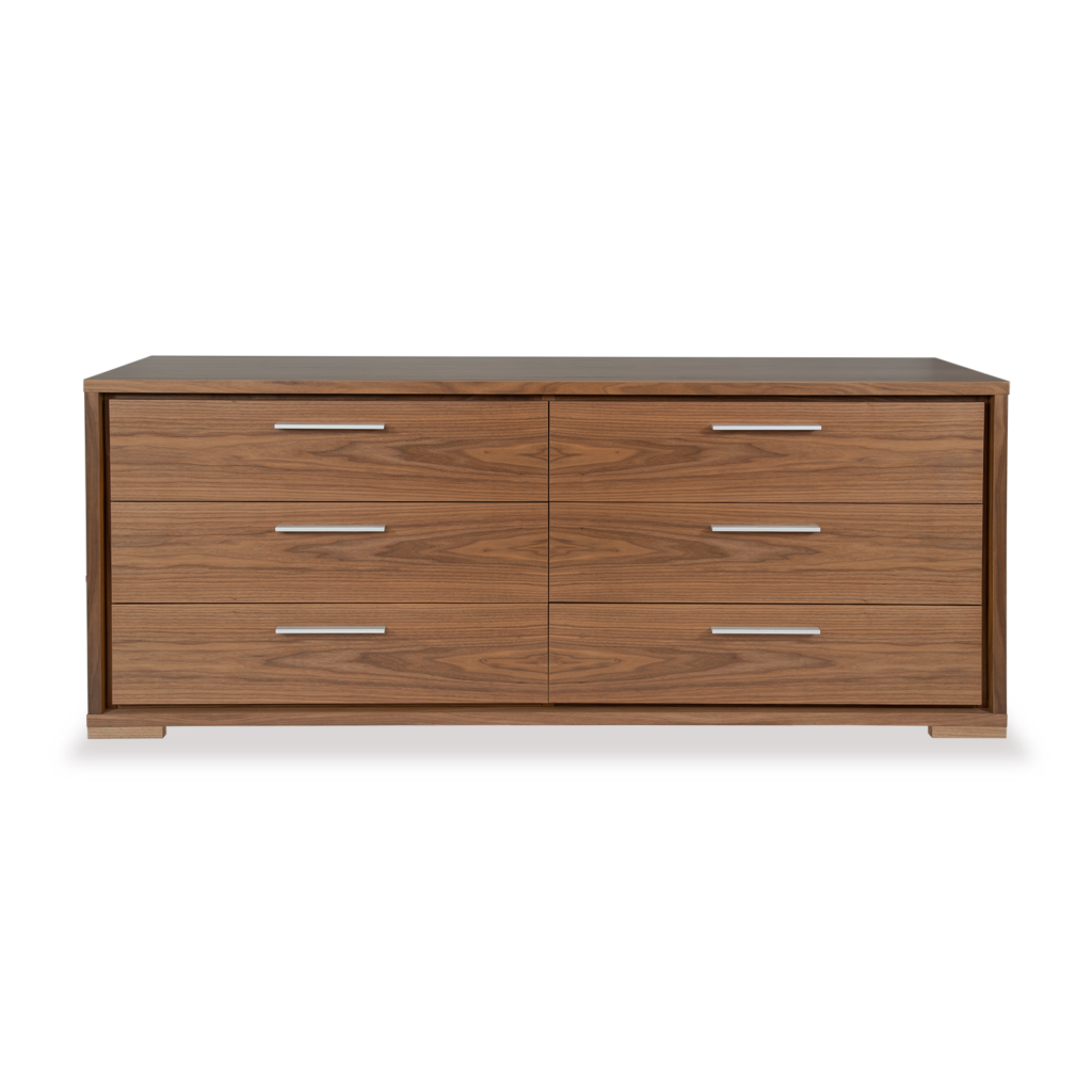 The Sonoma Double Dresser, available in walnut with nickel handles, features clean lines and six drawers that provide ample storage. Sonoma's design is simple and elegant and is at home in contemporary, transitional, and traditional design environments. Pair it with the Sonoma king or queen bed, nightstand, and high chest for a complete bedroom setup.