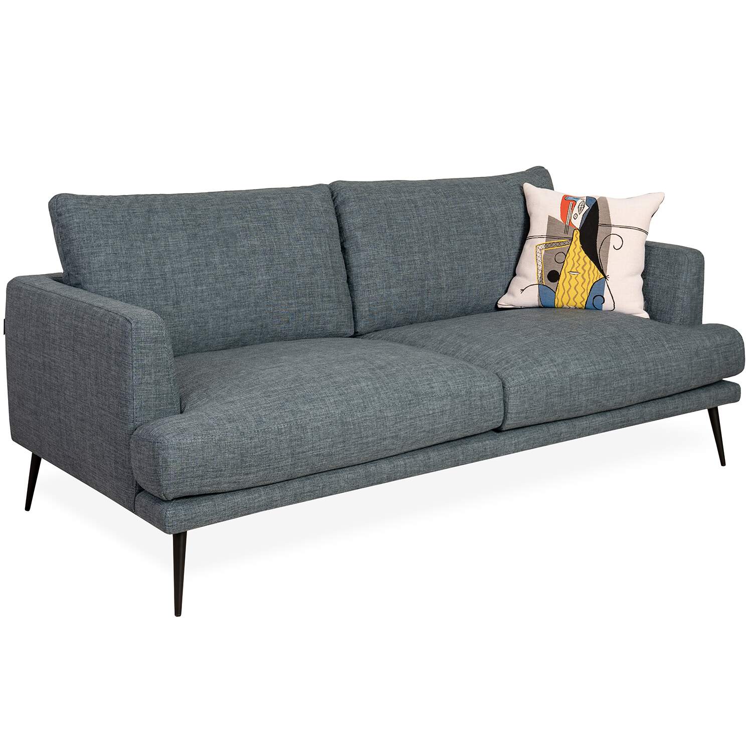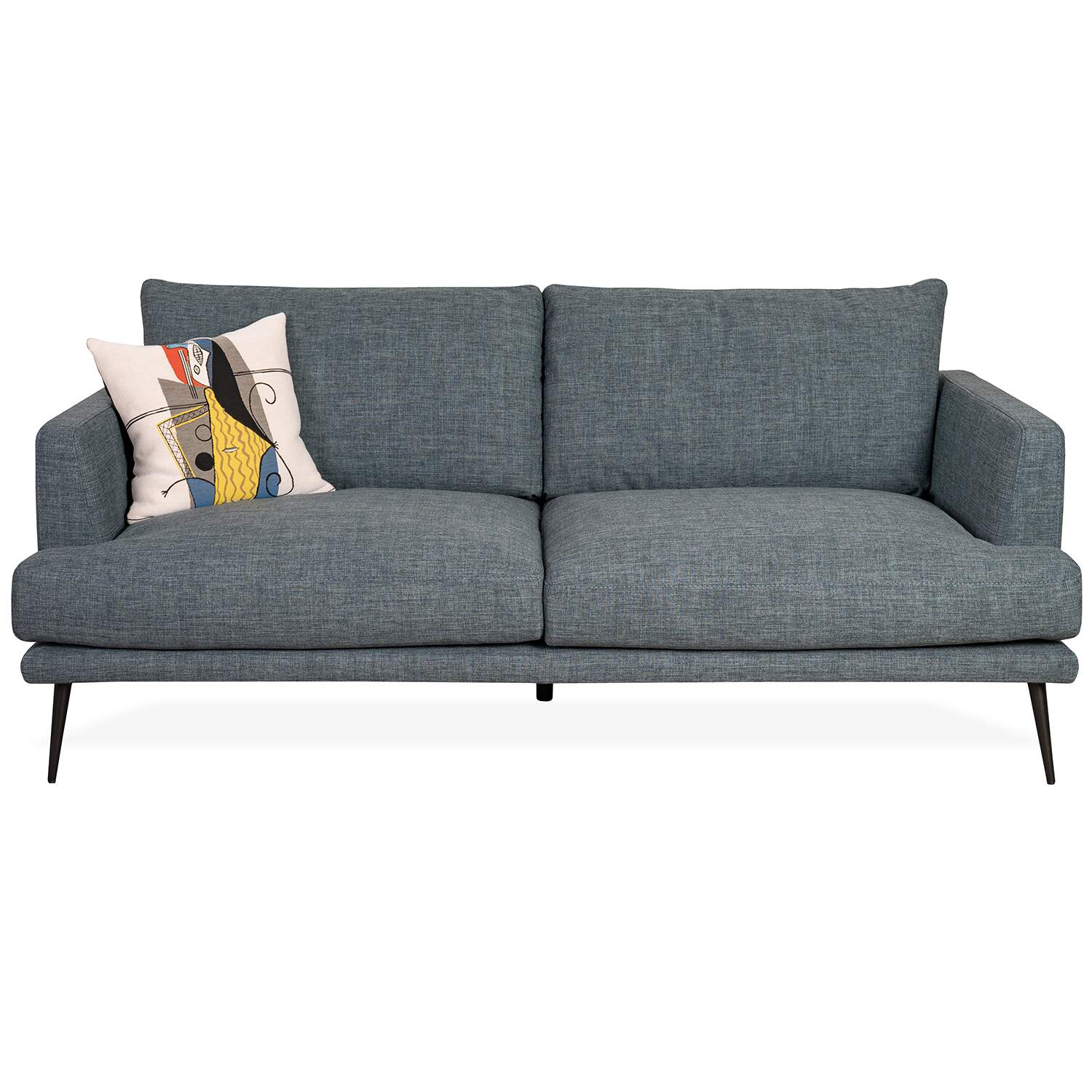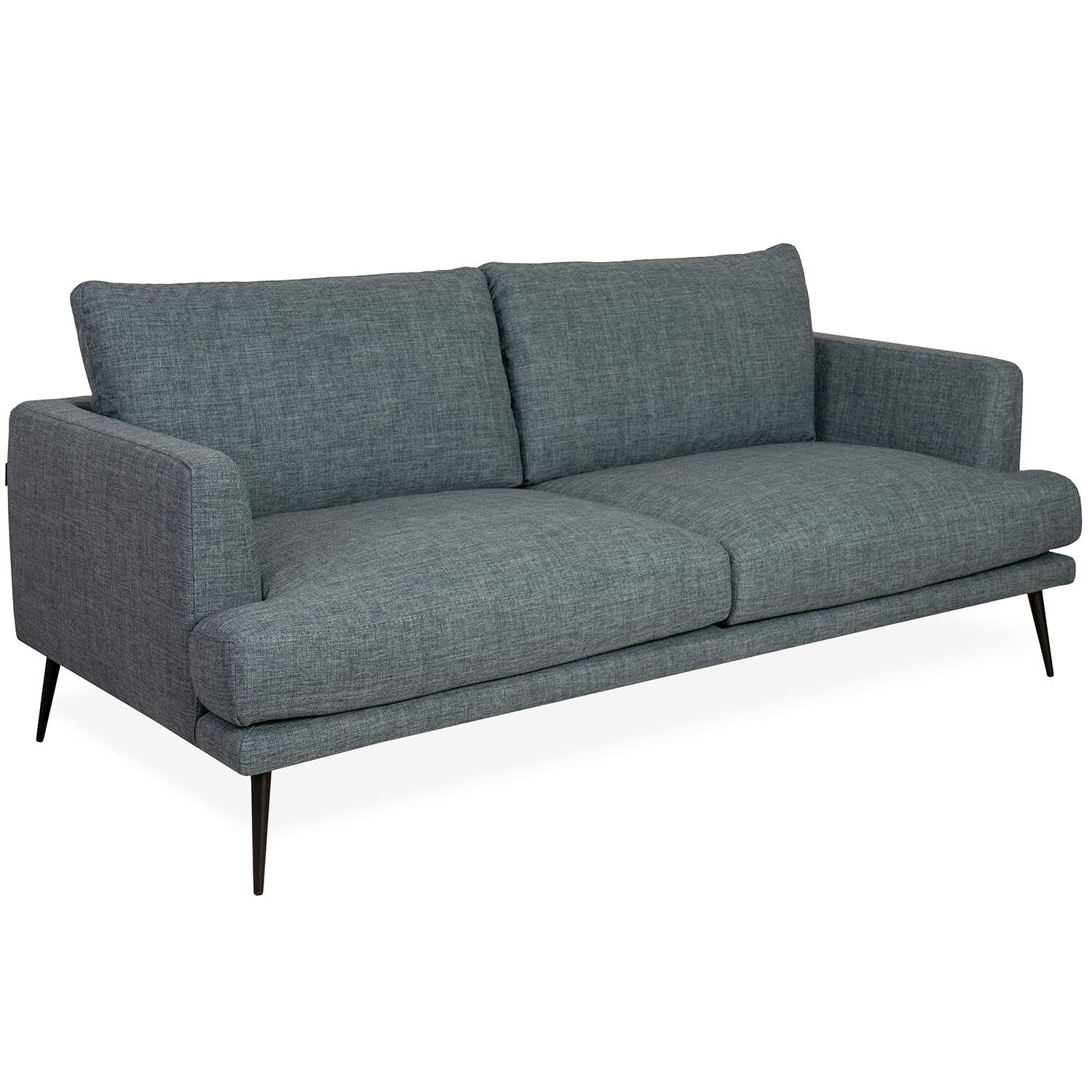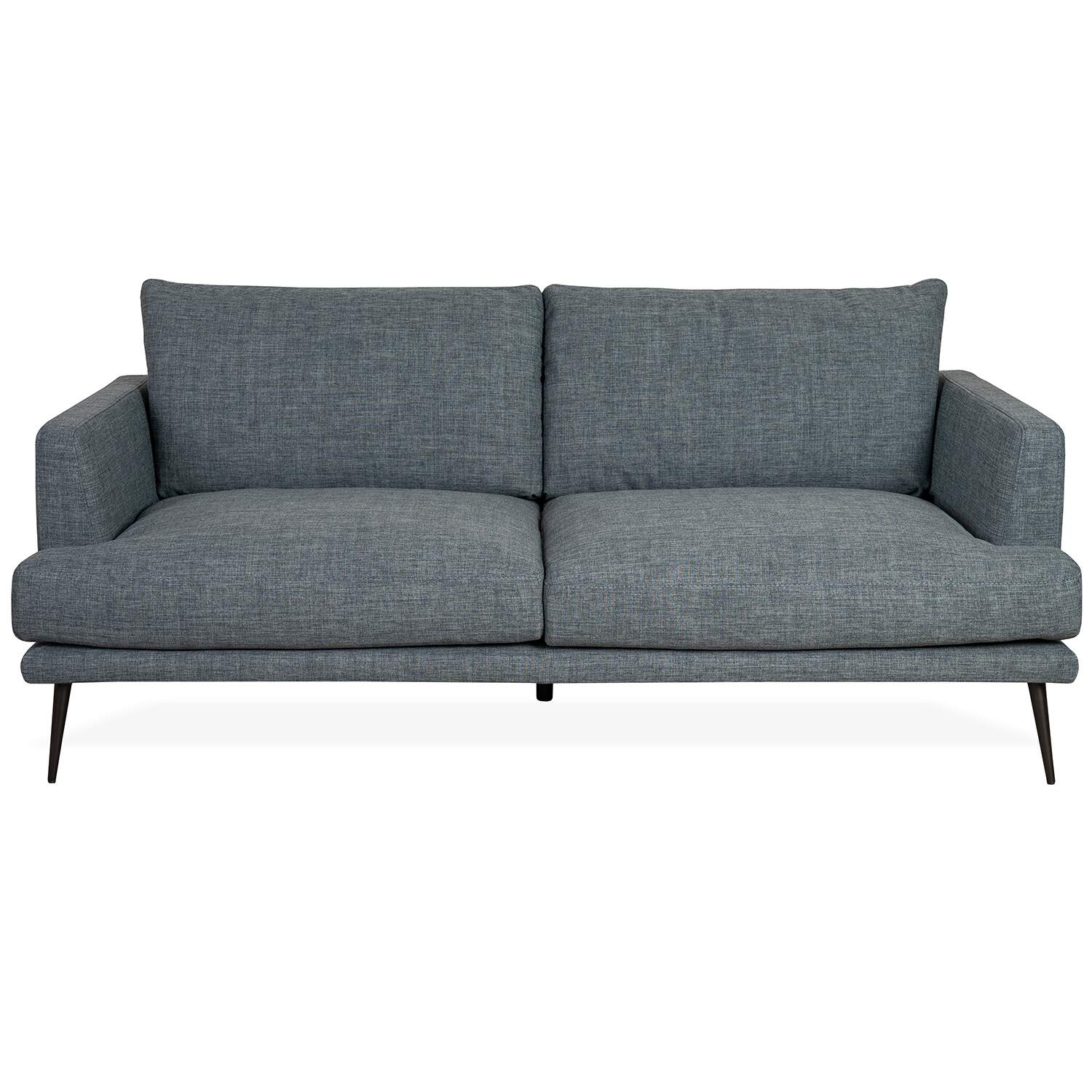 Inspired by Nordic vintage style, the Sophia Loveseat features a minimalist design with clean lines, wide cushions, and slim, tapered black metal legs. The steel blue fabric is stain-resistant and exceptionally durable, and its stylish color complements the loveseat's understated look. Sophia is the perfect choice for adding retro flair to your living room.