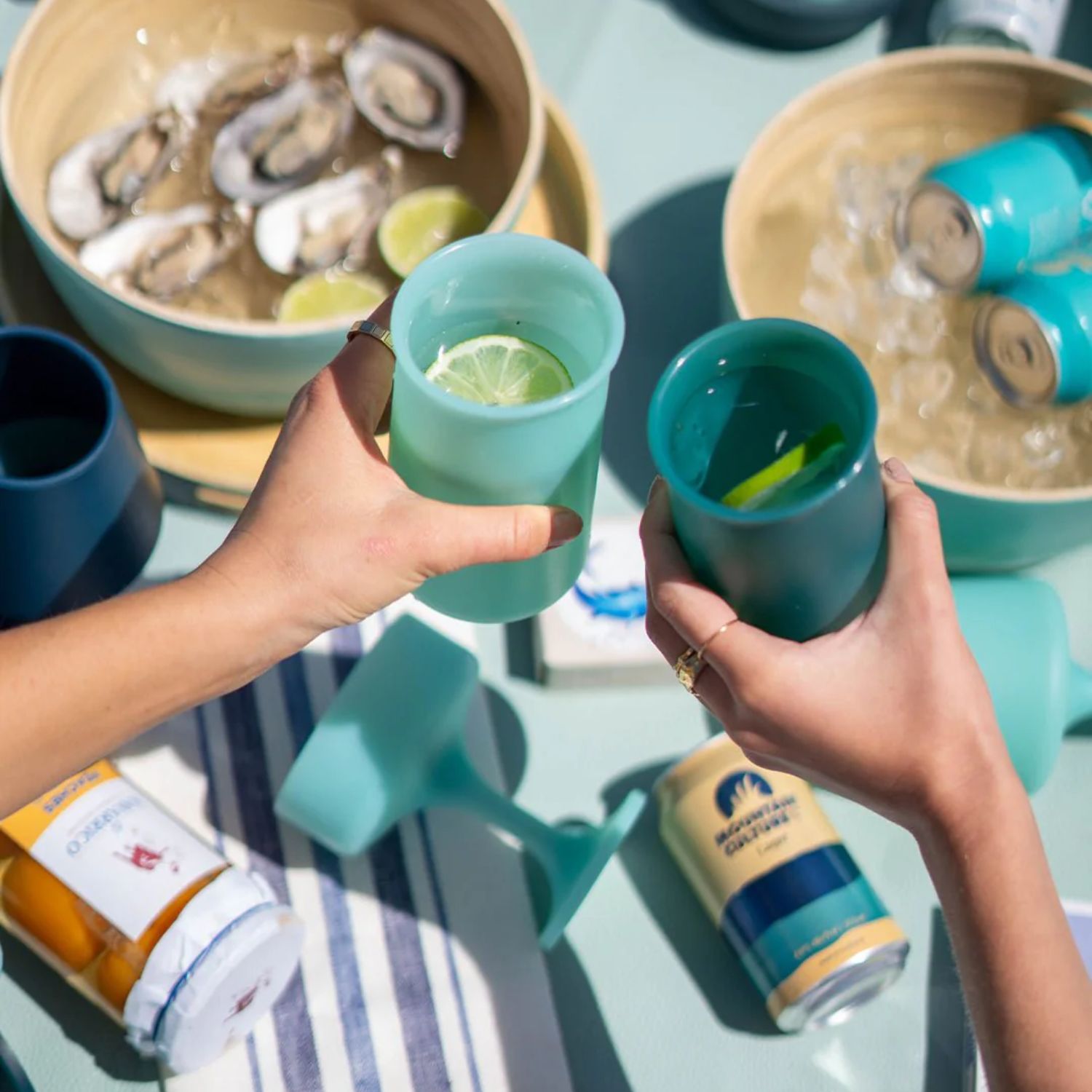 Add a splash of fun to your dining and cocktail experience with the Stegg Silicone Highball Glasses, sold as a pair in sophisticated shades of mist blue and dark, inky teal. Designed in Australia from FDA approved food-grade silicone, these unbreakable glasses are lightweight, portable, and outdoor-friendly. They are also safe for the dishwasher, microwave, freezer, and oven thanks to their ultra-durable construction. A sustainable alternative to single-use drinkware, Stegg is perfect for picnics, poolside, camping, festivals, and a plethora of other entertaining occasions.