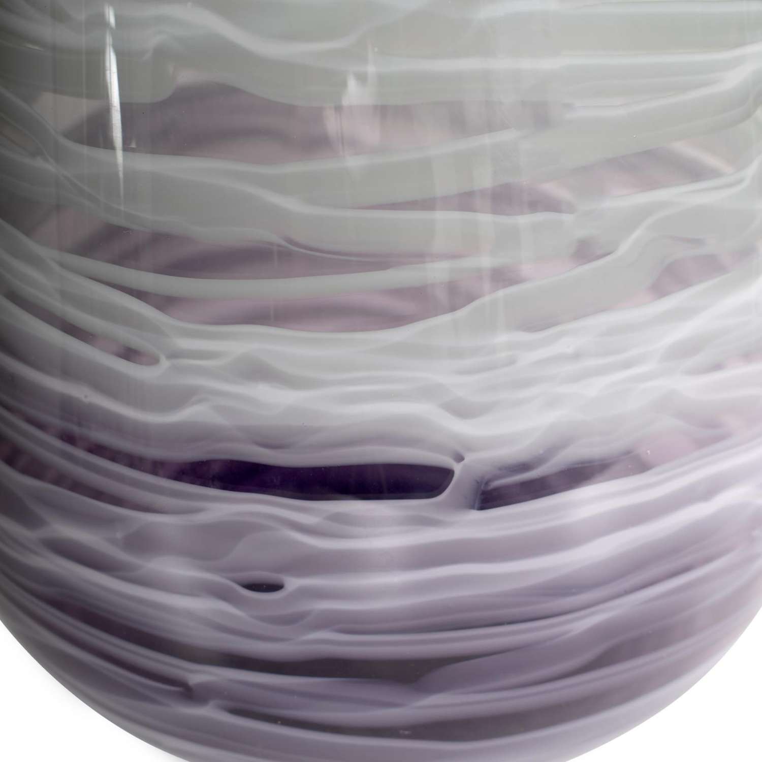 The Swirled Torpedo Short Vase is hand-blown from glass in a teardrop shape with a wide mouth. Its soft hues of lavender and grey are accented with a dreamy, swirled pattern in white that infuses this piece with a calm yet dynamic feel. Fill with flowers or pair with the Swirled Torpedo Tall Vase to add a delicate touch to your interior.