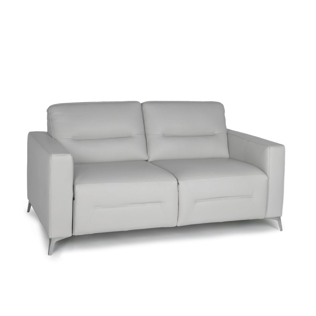 The Tucson Sleeper Full Sofa has a clean, structured shape that will boost the utility of your space and accomodate additional guests with ease! The light grey leather upholstery is accented by matching stitching across each cushion in a sleek, linear pattern. The wide seats and minimalist armrests heighten your comfort in both sofa and sleeper positions, while the angled metal legs subtly show beneath.