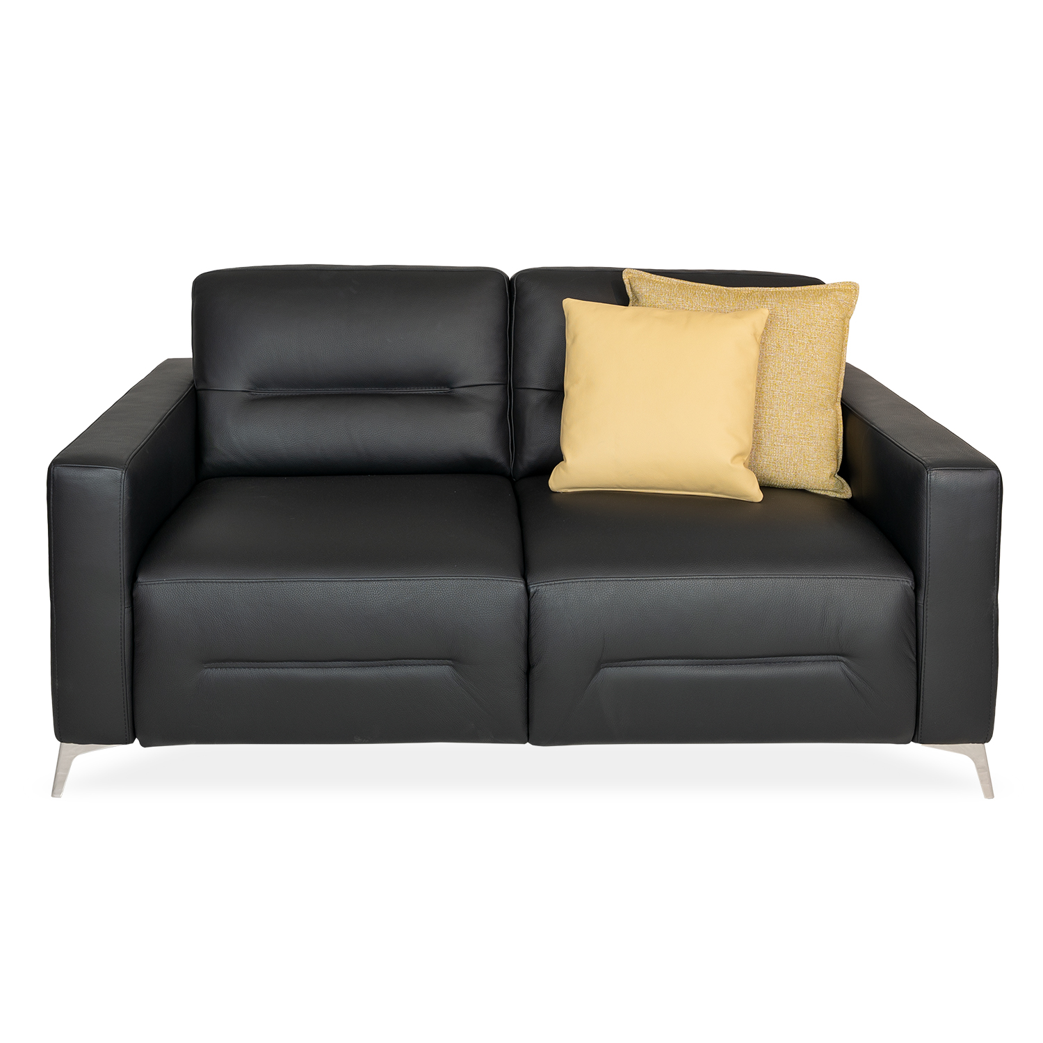 The Tucson Sleeper Full Sofa has a clean, structured shape that will boost the utility of your space and accomodate additional guests with ease! The black leather upholstery is accented by matching stitching across each cushion in a sleek, linear pattern. The wide seats and minimalist armrests heighten your comfort in both sofa and sleeper positions, while the angled metal legs subtly show beneath.