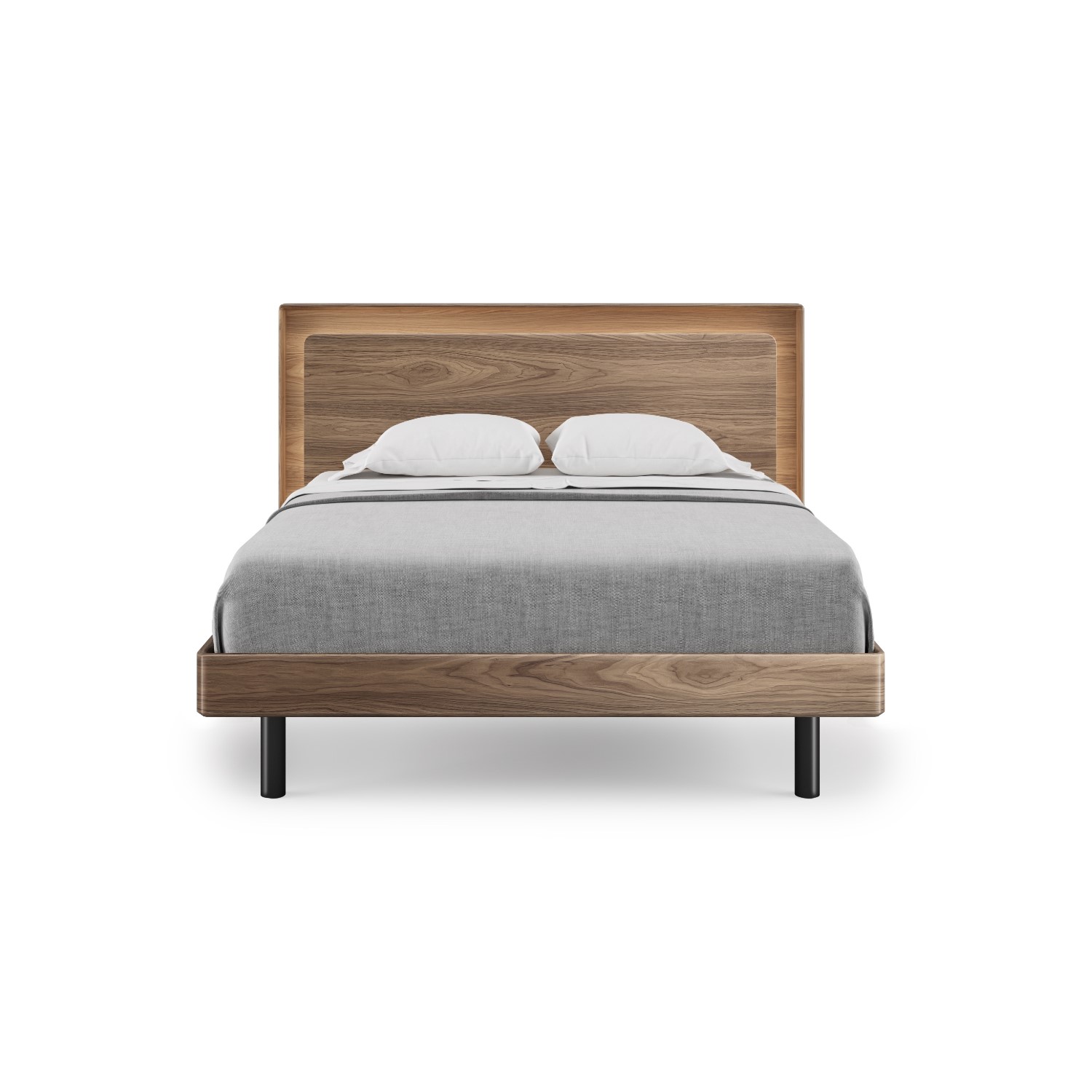 Designed by Matthew Weatherly for BDI, the Up-Linq Queen Bed combines a classic walnut veneer with cutting-edge features made to fit your modern lifestyle. Up-Linq's headboard has a floating front panel that hides an ultra-convenient power station on both sides of the frame. With three outlets, a USB-A port, and a USB-C port on each side, both you and your partner can charge devices, keep a lamp plugged in, and stay connected from the comfort of your bed.