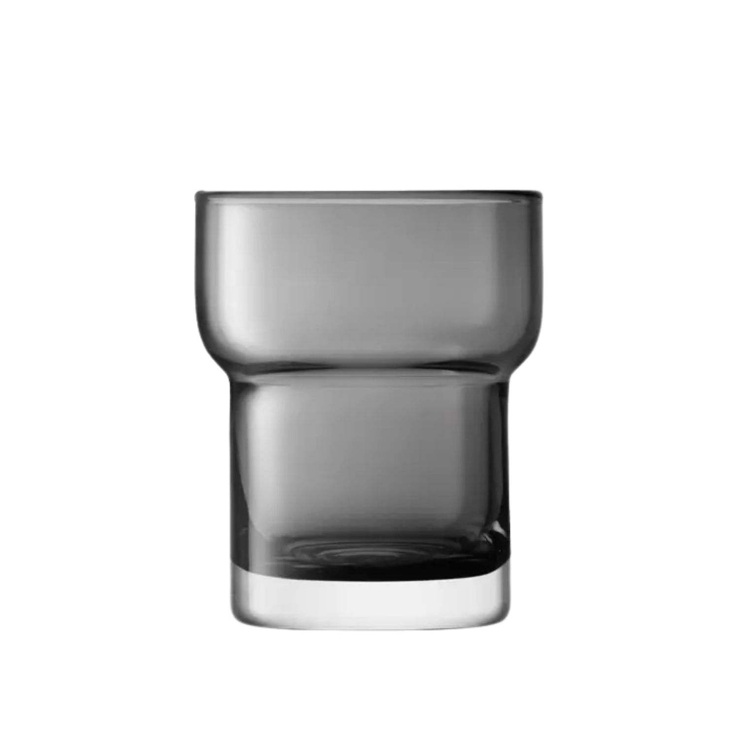 The Utility Tumblers are made of mouth-blown glass in slate grey and feature a modern stepped shape with thick walls and a soft, melted rim. Sold as a set of 2, these glasses can elegantly hold a variety of beverages for everyday use or special dining occasions.
