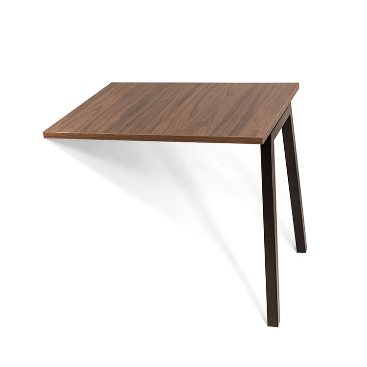 The Vili Return, available with a durable dark walnut melamine tabletop and modesty panel, complements any of the Vili desks and helps to create a larger, more productive workspace for your corporate or home office. The return features a wire management system and cable tray concealed by a black metal panel.