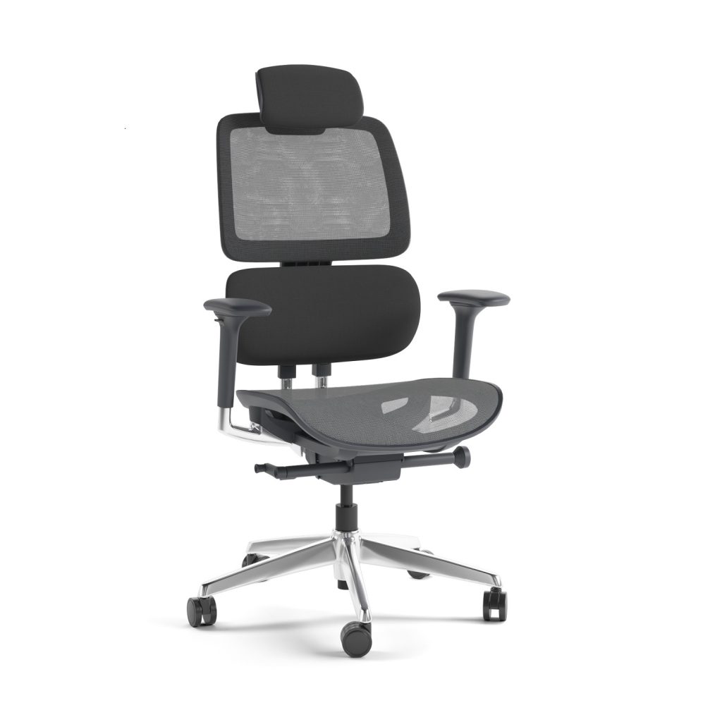 [description] => Coda Task Chair, D261, Black Frame With Plastic Base, Grey Fabric, Headrest, Bgb
