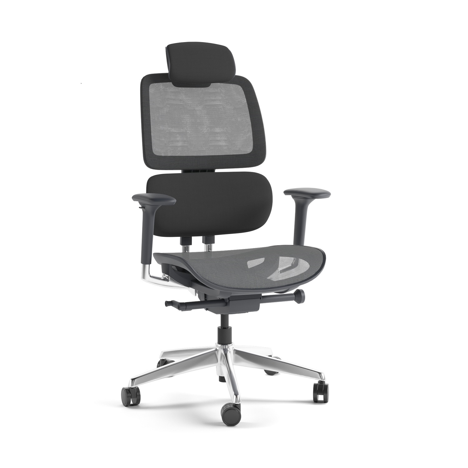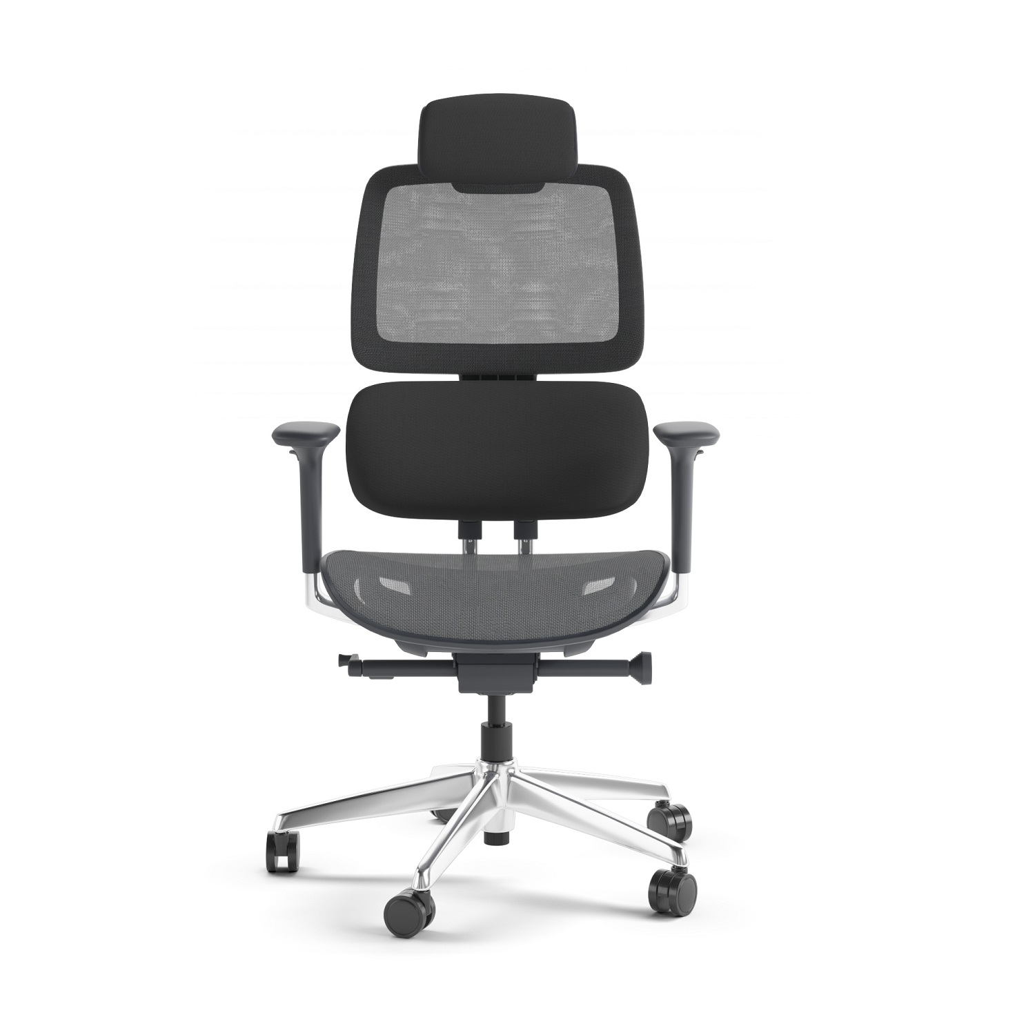 Shown in slate performance mesh with a polished aluminum base. Pure-glide casters function well on both carpet and hard floors.